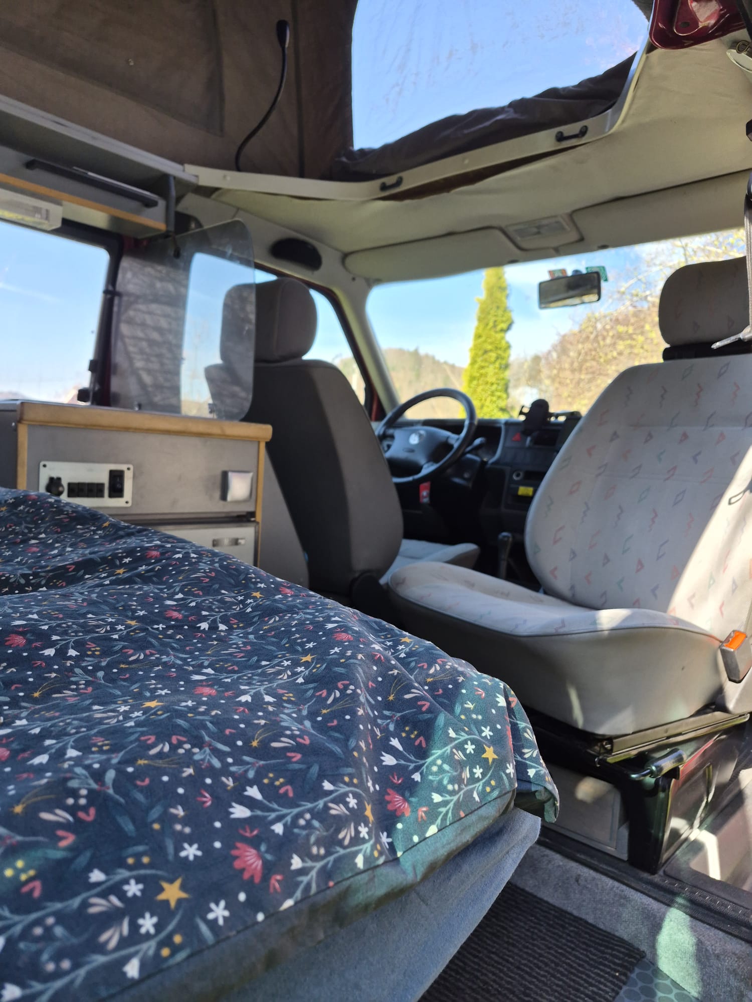 Aufgrund des grösseren Platzbedarfs meiner mittlerweile jugendlichen Kinder müssen wir uns schweren Herzens von unserem VW-Büssli trennen (3. Hand). Der Camper ist in sehr guten Zustand und kann sofort für Abenteuer (Utensilien wie Geschirr, Besteck, etc. sind mit dabei) loslegen. Das Fahrzeug hat kein Rost (was sonst für dieses Modell ein Schwachpunkt ist), da der Erstbesitzer nach dem Kauf eine Unterbodenversiegelung gemacht hat. Der Motor wurde vor 40'000 KM komplett revidiert. Der REIMO-Innenausbau besteht aus Küche mit zwei Gas-Rechauds (integrierte Gasanlage), einem elektrischen Kühlschrank sowie zwei 40 Liter Frischwasser- und ein entsprechend, integrierter Abwassertank. Die Elektrifizierung besteht aus einer Startbatterie sowie einer (unabhängigen) Versorgerbatterie, welche mit einer kleinen Solaranlage auf dem Dach auch längeres Stehen möglich macht. Ebenfalls integriert ist eine "kleine" Chemie-Toilette. Insgesamt hat es Sitz- und Schlafplätze (Faltdach) für 4 Personen (inkl. Sicherheitsgurten).